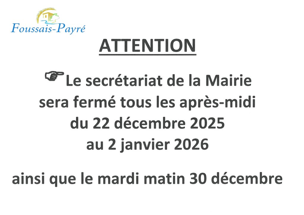 FERMETURE DE LA MAIRIE PENDANT LA PÉR...