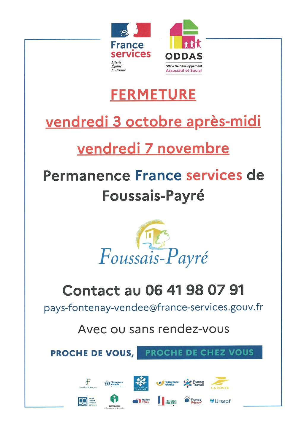 Fermeture de France Services le vendredi 7 novembre toute la journée.