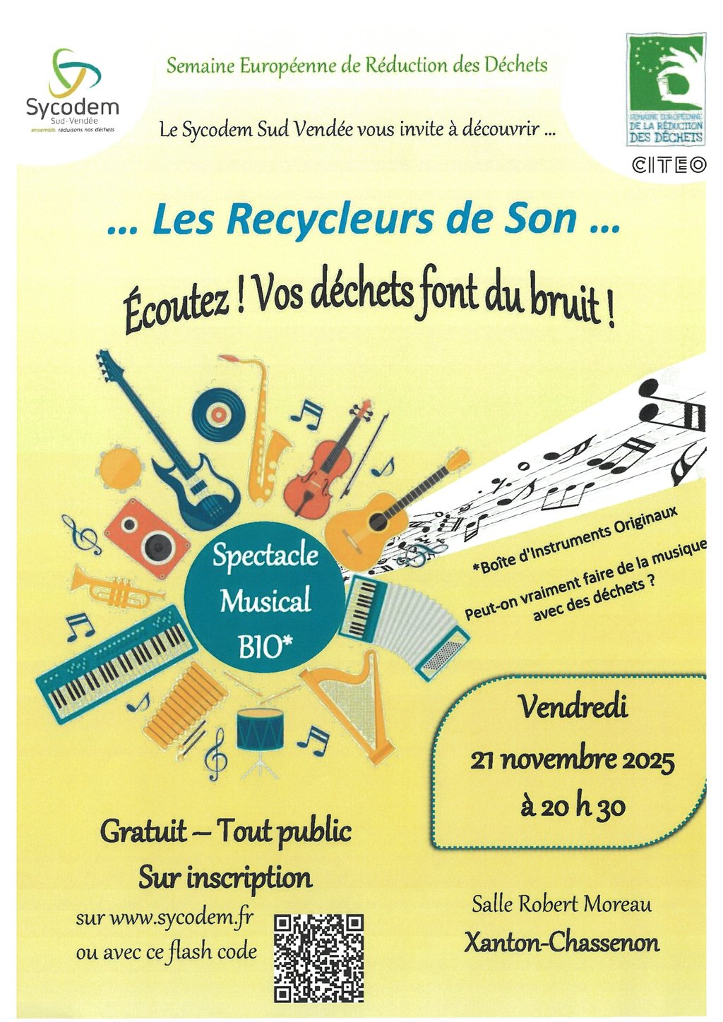 Pour la première année, à l'occasion de la Semaine Européenne de la Réduction des Déchets qui se déroule fin novembre, le Sycodem Sud-Vendée organise un événement culturel gratuit autour des déchets abandonnés : le spectacle musical BIO* (*Boite d'Instruments Originaux)