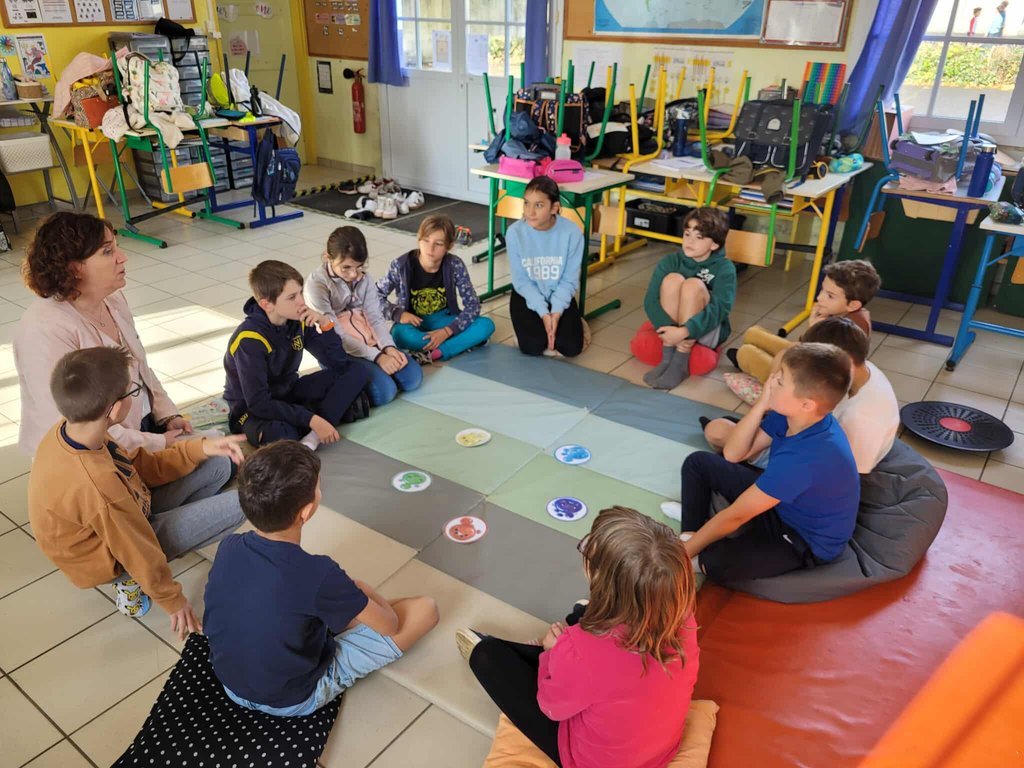 Une classe maternelle-CP gérée par Chloé BLAIZEAU aidée d'Emilie JUILLET (ASEM) ainsi que Samçy CAUBET (apprentie) et Eva DEl Vecchio (AESH).